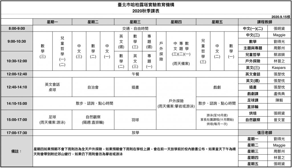 - 每位教師在專業方面有能力和充分自由,分段設計一到十二年級的課程,或開設斥幾有興趣的社團性課程與學生共同學習。